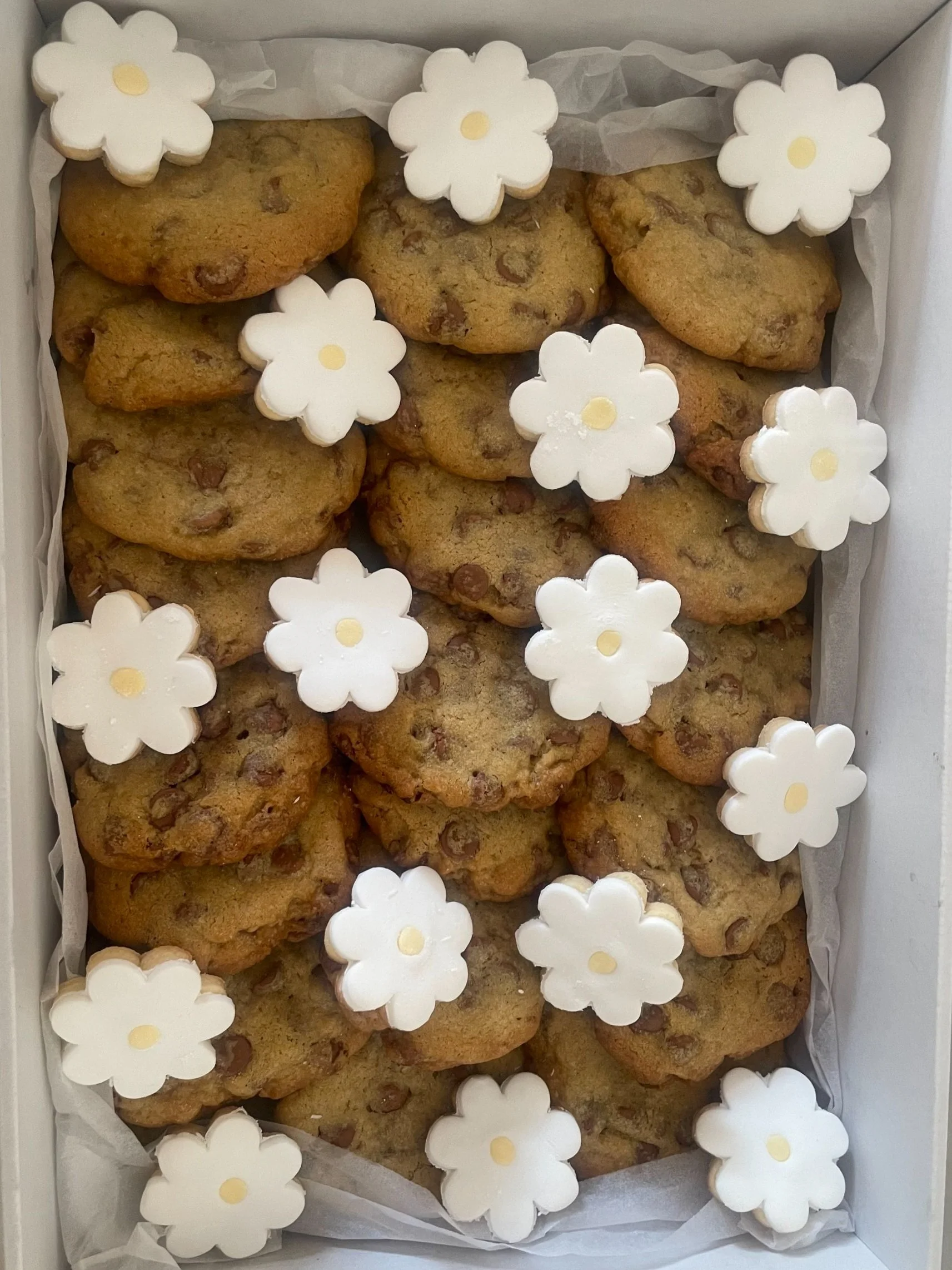 A box of our signature chocolate chip cookies with vanilla daisy cookies, perfect for any occasion